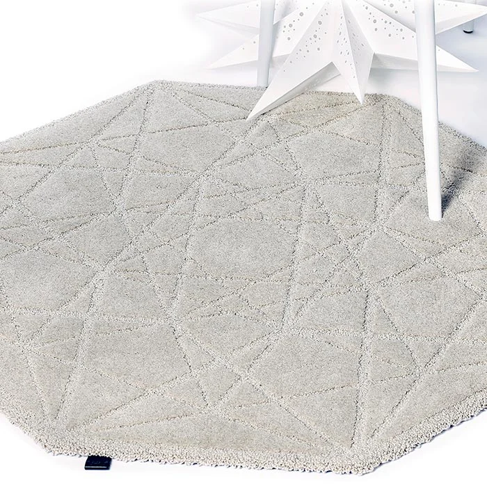 The MOSS collection includes woollen rugs with a pleasently soft and mossy texture. The STAR rug has a special diamond-like shape and tone-on-tone graphic pattern, formed by a combination of velour and looped surfaces.