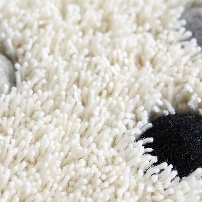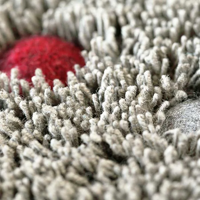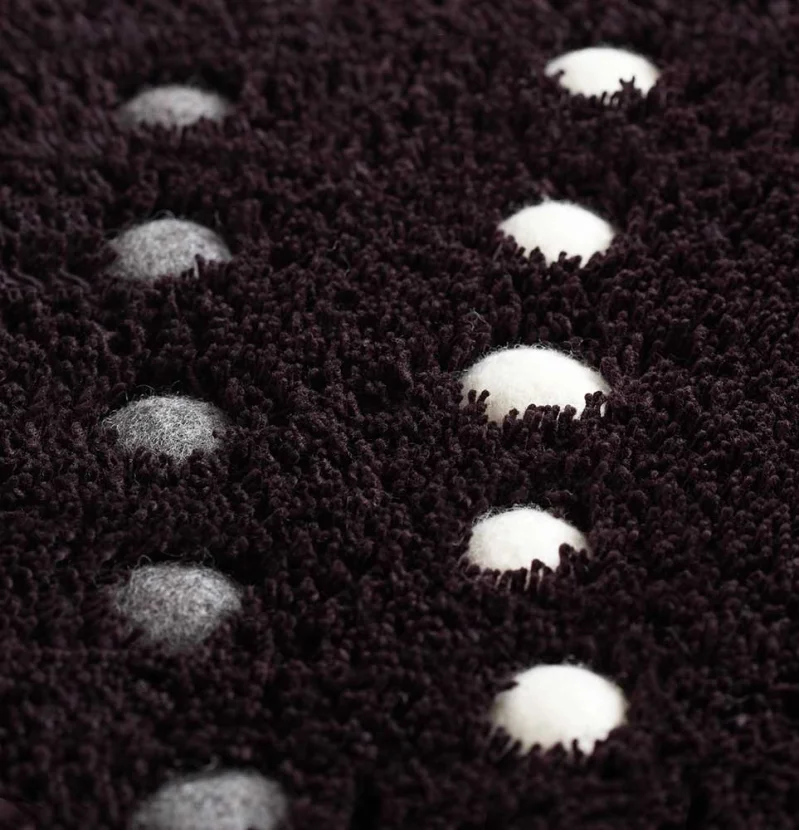 The shaggy surface of the POHL rug is hand-tufted, made of heavily multiplied woollen yarn and hand-felted dots. The woollen dots form a pattern and make themselves pleasantly noticeable under your feet.